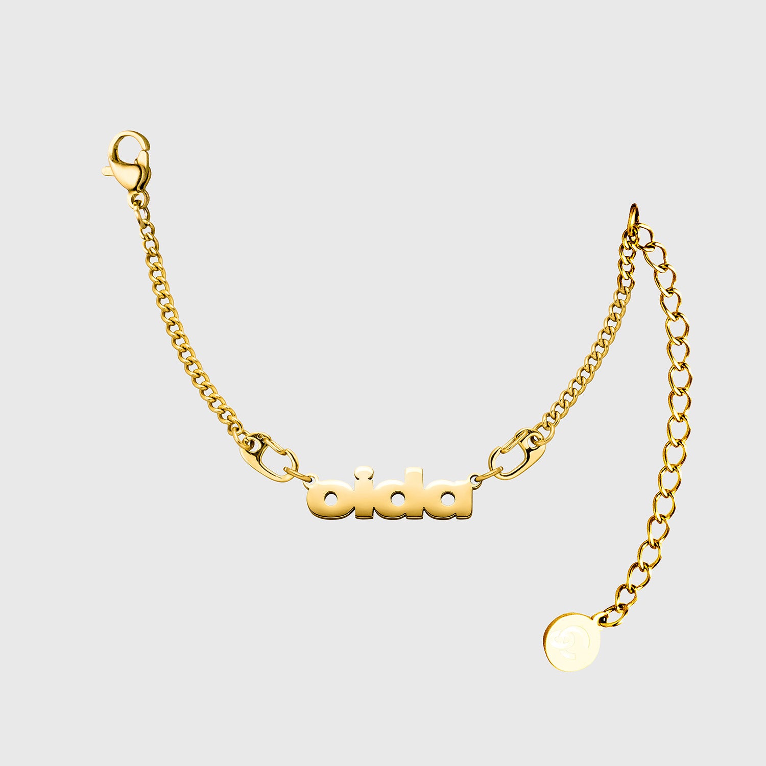 Das hochwertige Statement mit oida-Schriftzug ist in vergoldeter oder hochpolierter Variante erhältlich. Mit klarer Typografie und modernem Design ist sie das perfekte Accessoire für Dialektfans, Wiesn-Held:innen und urbane Originale.