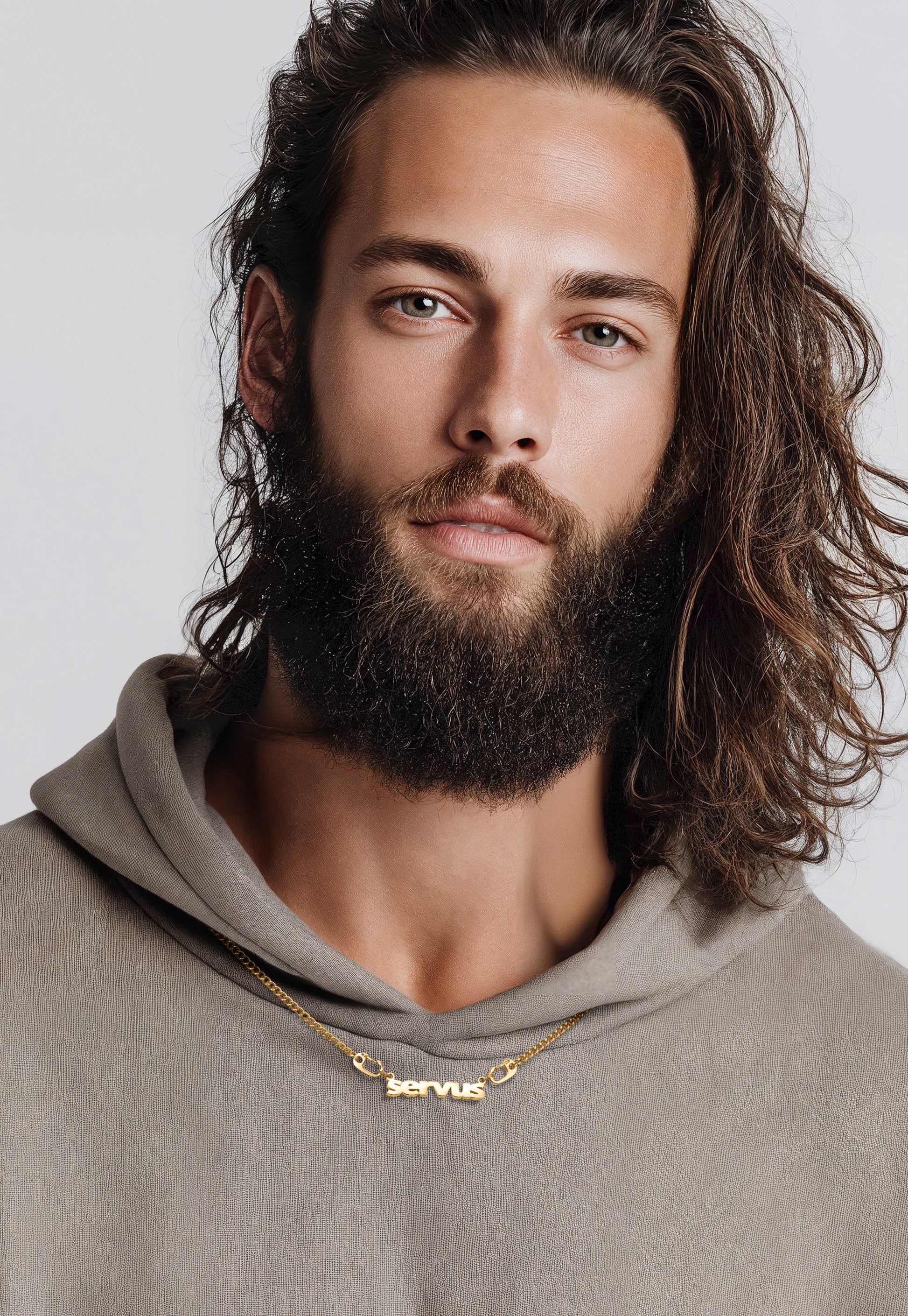 Der servus-Schriftzug ist präzise lasergeschnitten und handveredelt – wahlweise 18K vergoldet oder im hochpolierten Silber-Look. Klar in der Typografie, stark im Ausdruck, zeitlos im Design.