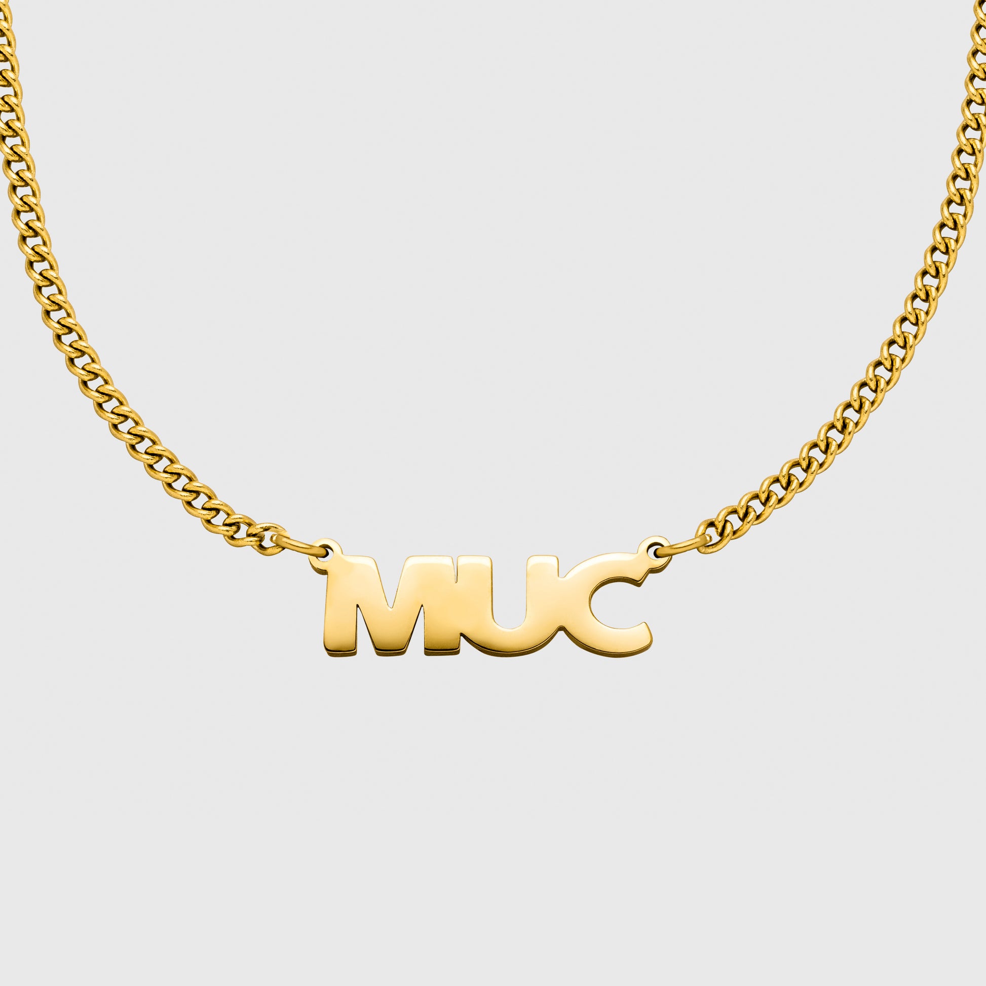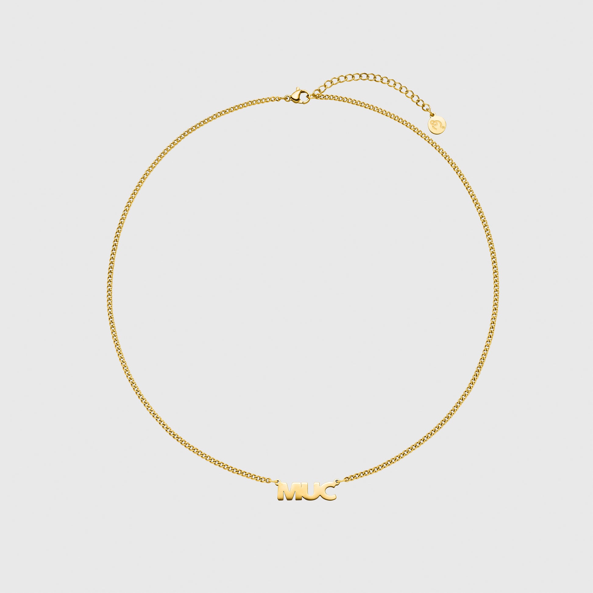 Die hochwertige Halskette mit MUC-Schriftzug ist handveredelt und in vergoldeter oder Silber-Look Variante erhältlich. Mit klarer Typografie und modernem Design ist sie das perfekte Accessoire für Stadtmenschen, Wiesn-Liebhaber und Isar-Fans.
